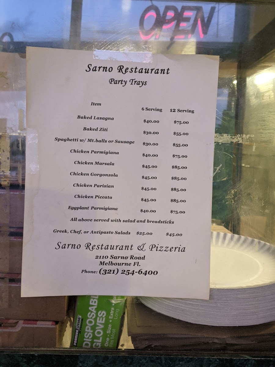 Welcome to Sarno Restaurant & Pizzeria, a hidden gem located at 2110 Sarno Rd, Melbourne, FL. This inviting eatery offers a diverse menu that caters to all tastes, making it the perfect spot for both casual diners and pizza aficionados alike.